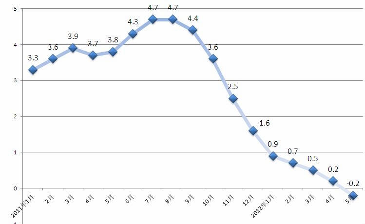 2011年1月-2012年5月PPI月度同比涨幅走势图