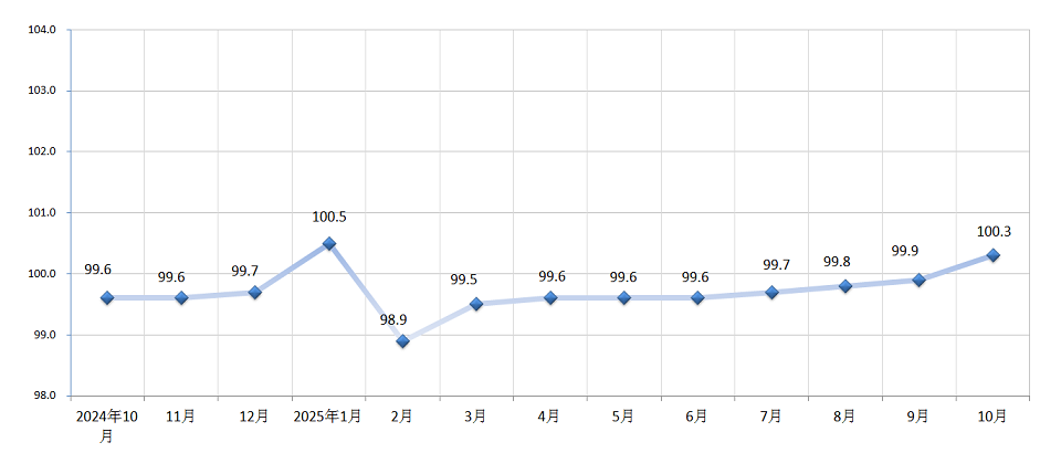 2024年10月-2025年10月居民消费价格指数同比走势图