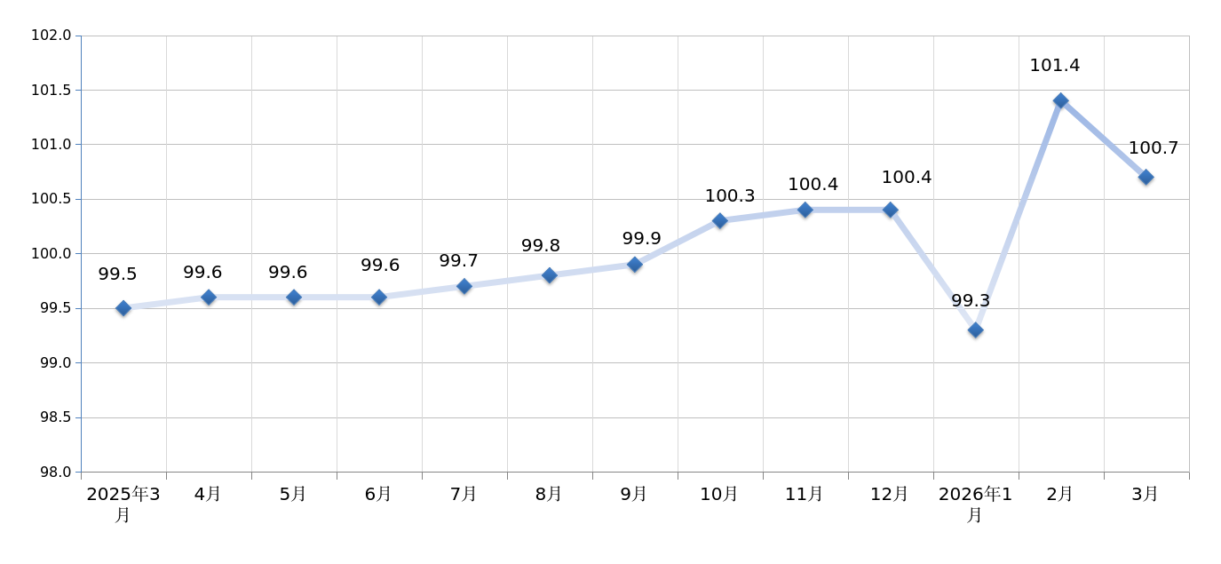 2025年3月-2026年3月居民消费价格指数同比走势图